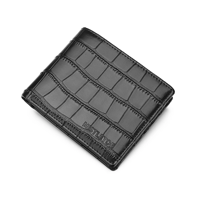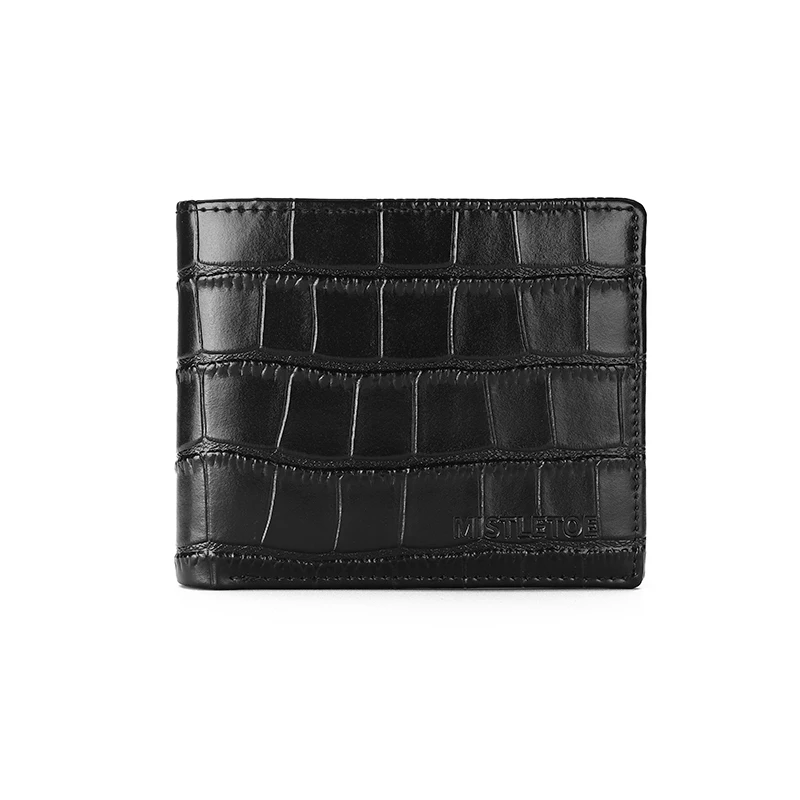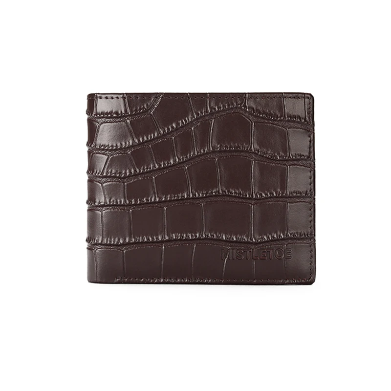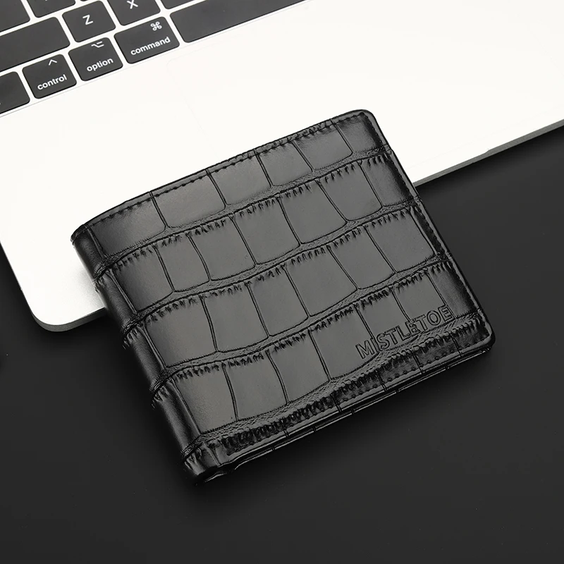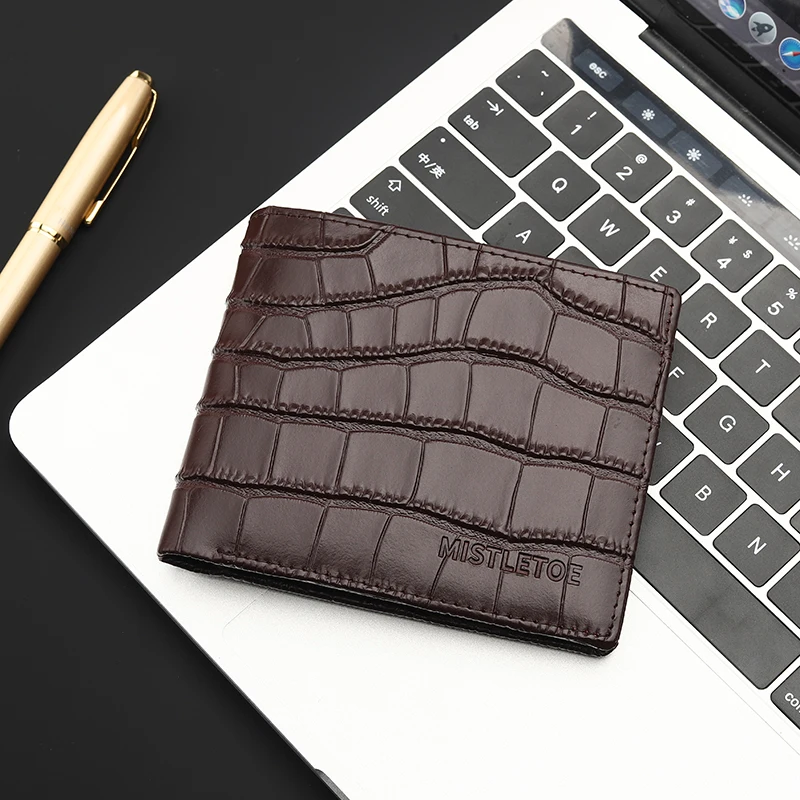 Carry your essentials in style with the MISTLETOE Genuine Leather Men’s Wallet, featuring a luxurious crocodile-print design crafted from premium cowhide leather. This short bifold wallet combines elegance with security — equipped with anti-RFID technology to protect your personal information from digital theft.